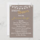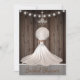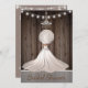 Rustic yet Elegant Bridal Shower Invitation with Bride, Parasol against a wood background with string lights, hearts and chandelier.