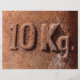 Rusty 10 kg weight sign. Photography.