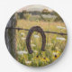 Rusty Horseshoe on Barbed Wire Fence Paper Plate