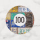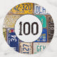 Old rusty license plate collection for 100th birthday party.