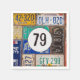 Old rusty license plate collection for 79th birthday party.