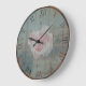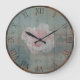 Add the look of an antique clock to your home. The image contains a painted pink rose, rusted metal slats, raised roman numerals and a beveled edge (all digitally designed to look dimensional in a flat image). Look for this clock in a square design as well.