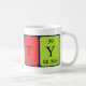 Rusty spelled out as Ru S T Y (Ruthenium Sulfur Tritium Yttrium) on a mug for the scientist in you.