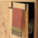 Muted rusty red green and blue stripes make a dramatic tea towel.