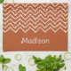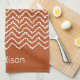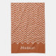Rusty Red Terracotta Squiggly Chevron With Name Tea Towel