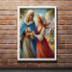 In this touching scene, Ruth and Naomi walk hand in hand, symbolising loyalty and devotion. The peaceful countryside, with lush fields and a modest cottage, underscores themes of simplicity and new beginnings. Ruth's vibrant attire reflects her strength and courage as she follows Naomi on this journey of faith. Their compassionate expressions and intertwined hands capture unity and trust. This beautiful portrayal, inspired by the Book of Ruth, reminds viewers of the enduring power of love, resilience, and faithful relationships during life’s most challenging and transformative seasons.