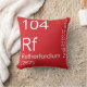 This element pillow of the element Rutherfordium is from the periodic table of elements. We sell pillows of every element from the periodic table in a variety of colours. They're the perfect gift for the organic chemistry, chemistry, analytical chemistry, or biochemistry buff in your life. Every chemical engineering department should have a collection. Get one for your science grad today!