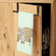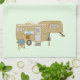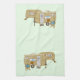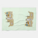 Camper kitchen towel with family name. RV 5th wheel travel trailer image on pale green kitchen towels. The image and plaque with family name is printed on both ends. Personalize to take camping for a unique addition to your home on wheels.