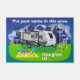 This doormat can be customised to show your name on top. When used outside of your RV, people will know who they are talking to when they see you. Non-slip rubber that won't crack or buckle, this mat resists fading, mould, and mildew and can be easily cleaned with a hose. This version is a travel trailer similar to a Coachmen Apex Nano. It can be used indoors or out and makes a great welcome mat for your campsite, wherever you may go. To customise the name, click on the text "put your name in this area" and change it to whatever you want. If you don't see the text change on the actual design, you haven't done it quite right. You might have to double-click on some devices to be able to change it. Happy camping!
