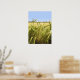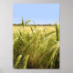 Green rye field and blue sky background, drawing effect