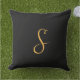 S, gold on black, monogram, custom-designed outdoor pillow.