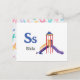 "Letter S is for Slide" in our Alphabet Flash Card set. Get all 26 letters of the alphabet! A double-sided postcard that is great for memory games and teaching, geared for education, schools, teachers and homeschoolers for kindergarten and babies. All text is editable if you need to customise.