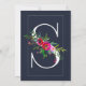 S Monogram Last Initial Modern Blue Floral Wedding Invitation