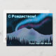 Purple and blue northern lights glow over snow-covered mountains on a cold night in Alaska. Cyrillic (Russian) text reading "S Rozhdestvom" (С Рождеством - A Russian Christmas greeting) appears in glowing blue and white. Add your own additional text.