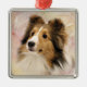 Beautiful sable Sheltie or Shetland Sheepdog face on a pastel painting like background dog lovers ornament