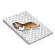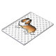 Destei's original cartoon illustration of a cute sable Shetland Sheepdog / Sheltie breed dog. The background has a pattern of grey dog paw prints.