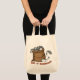 The printing came out very well, better than I had anticipated. The natural color fabric is sturdy with strong seams and comfortable handles. This tote fits easily over my shoulder. As it is filled, the bottom flattens out--very cool! I would buy this product again. This grocery tote holds a lot of groceries! The image quality was very good. The colors were a little darker than I had expected. The darkness may have been due to printing on a natural color fabric rather than on white. The cat design is attractively centered on the tote. The spirit of the design is very lively, just as it appears on the Zazzle website.