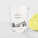 Modern Sacramento skyline shot glass favour gift with "cheers" script. The design showcases a stunning sketch with the ability to customise your names and exact location. Enter the Zazzle design tool for additional customisations.
