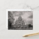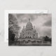 This postcard captures the Sacre Coeur Cathedral high on the the summit of the butte Montmartre, the highest point in the city. This black and white photo captures the beautiful Cathedral the surrounding trees and digitally enhanced clouds with a tough of oil painting effect.