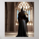 Sacred Crusade - in this AI Fantasy Digital Art Print the Crusading Knight finds solace within a serene alcove, gathering strength and fortitude before the impending battle.