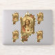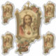 This beautiful contour sticker features a traditional Catholic image of the Sacred Heart of Jesus with a gold decorative border and lamb.