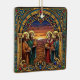 Celebrate faith and family with this stunning square ornament featuring a classic Sacred Hearts stained glass design. This deeply spiritual image depicts the Sacred Heart of Jesus flanked by the Immaculate Heart of Mary and the Chaste Heart of St. Joseph. The vibrant colours and rich detail, inspired by traditional church windows, make this a truly unique and meaningful piece.