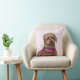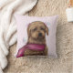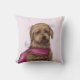 A cute illustrated pillow depicting a golden-doodle named Macrina from the book “Sacrificial Love” by Ian M. Snyder.