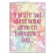 Funny, sarcastic Valentine’s Day greeting on a colourful abstract pastel bokeh hearts background with quirky typography.