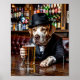 Sad and Lonely Pets Poster Print: "She's Gone" – In this emotionally charged artwork, a sorrowful male dog dressed in a vintage suit and fedora sits alone at a dimly lit bar, nursing a bottle of beer. His posture is slouched, his gaze empty—he's trying to drink away the memory of a love that's vanished. The ambiance is nostalgic and moody, capturing the melancholy of heartbreak with surreal and whimsical undertones. This piece blends anthropomorphic storytelling with retro noir vibes, perfect for those who appreciate humour tinged with pathos.