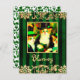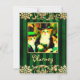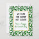Ah, these sad cats got all dressed up for Saint Catrick's Day, aka St. Patty's Day, only to learn they were serving clover and not catnip at the party. They look non-too-happy with the phrase "Blarney" on the front, with blue, green, and gold elegant stripes and fancy top hats. On the back side of this flat card, there's the phrase "We Came for Catnip Not Clover" with a "Saint Catrick's Day" greeting, surrounded by a stylised clover pattern.