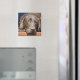 Looking cute on the fridge or file cabinetl! It's a close up photograph on the face of a sad chocolate Labrador Retriever on a magnet. .Photo © Patricia AZ Phillips.