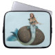 3D digital render of a beautiful sad mermaid sitting on a stone on blue background