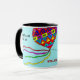 A cute little bunny dressed in traditional Ukrainian clothing, hangs on to a heart shaped pysanka balloon that will take him who knows where. Personalise this mug for someone leaving your pack.