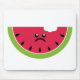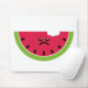 Cutesy kawaii style graphic print. Sad looking watermelon with bite missing.