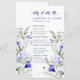 Sade Of Royal Blue Ivory Floral Wedding Menu