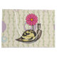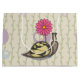 Sadie the paisley snail smiles as she scoots along in her striped shell under her favourite pink flowers.