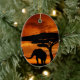 Safari African Baobab tree elephant silhouette Ceramic Ornament