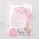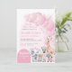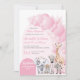 🎈 Pink Balloons Arch Decor: A graceful arch of pink balloons frames your invitation, evoking a sense of joy and festivity that perfectly complements the celebration of a precious baby girl.