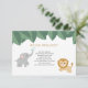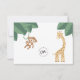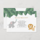 Baby safari / jungle animal book request card - perfect for safari or jungle theme showers. Cute elephant and jumping lion decorate the front with a monkey and giraffe on the back of the card. Wording reads: