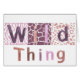 A fun design featuring a safari animal print design in shades of purple. Says 'wild thing'...
