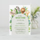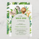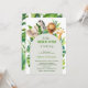 Safari African animals watercolor cute baby shower invitation, gender neutral, with tropical leaves