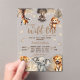 Join us for a charming boho baby boy shower with a safari theme! Our adorable acrylic invitation features playful baby animals including a monkey, giraffe, ostrich, lion, elephant, and tiger, all set against a beautiful backdrop of pampas and palm leaves. Delicate script and intricate details make this design truly one-of-a-kind.
