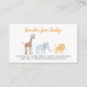 Adorable watercolor baby elephant, lion and giraffe safari design baby shower book request card, with Books for Baby in a modern lower case script. Customise the text with your own wording. Original art by Nic Squirrell