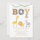Safari or zoo-themed baby shower invitations welcoming a little boy.
