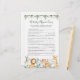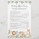 Safari animals themed baby shower nursery rhyme quiz game card features a watercolor safari animals illustration and watercolor greenery eucalyptus garland and elegant handwritten style font.