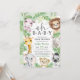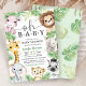 Celebrate the upcoming arrival with our Safari Animals Baby Shower baby shower invitation! The design features a group of adorable jungle animals and rustic tropical greenery leaves, perfect for a unique safari-themed baby shower. Personalize your invites today and start the celebration!