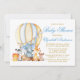 Safari Animals Blue Bow Air Balloon Baby Shower Invitation