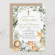 Invite your guest with our elegant and modern safari animals confirmation invitation features greenery eucalyptus garland and watercolor safari animals. Personalise with your details in simple layout and elegant handwritten style font.