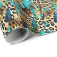Plunge into a vivid realm where creativity intertwines with nature in this bohemian-inspired wild essence wrapping paper. Impeccably designed with artful finesse, they marry the raw allure of safari fur patterns with the unbridled beauty of boho chic. The colour palette sings with inky blacks, gleaming golds, earthy browns, and a splash of refreshing teal blue. Every mark, circle, line, and spontaneous shape pays homage to both the wild and the whimsy. Perfect for various occasions: