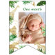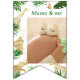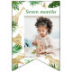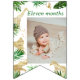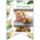 Brighten up your safari animal birthday with this cute milestone photo bunting! Patterned with watercolor green leaves, and cute gold animal silhouettes. Each flag template is ready to use add your photos you have space for fourteen different photos. Let's celebrate the baby's 1st birthday! Great for a wild one themed first birthday party for a boy or a girl. Find matching fully customisable items in my shop.